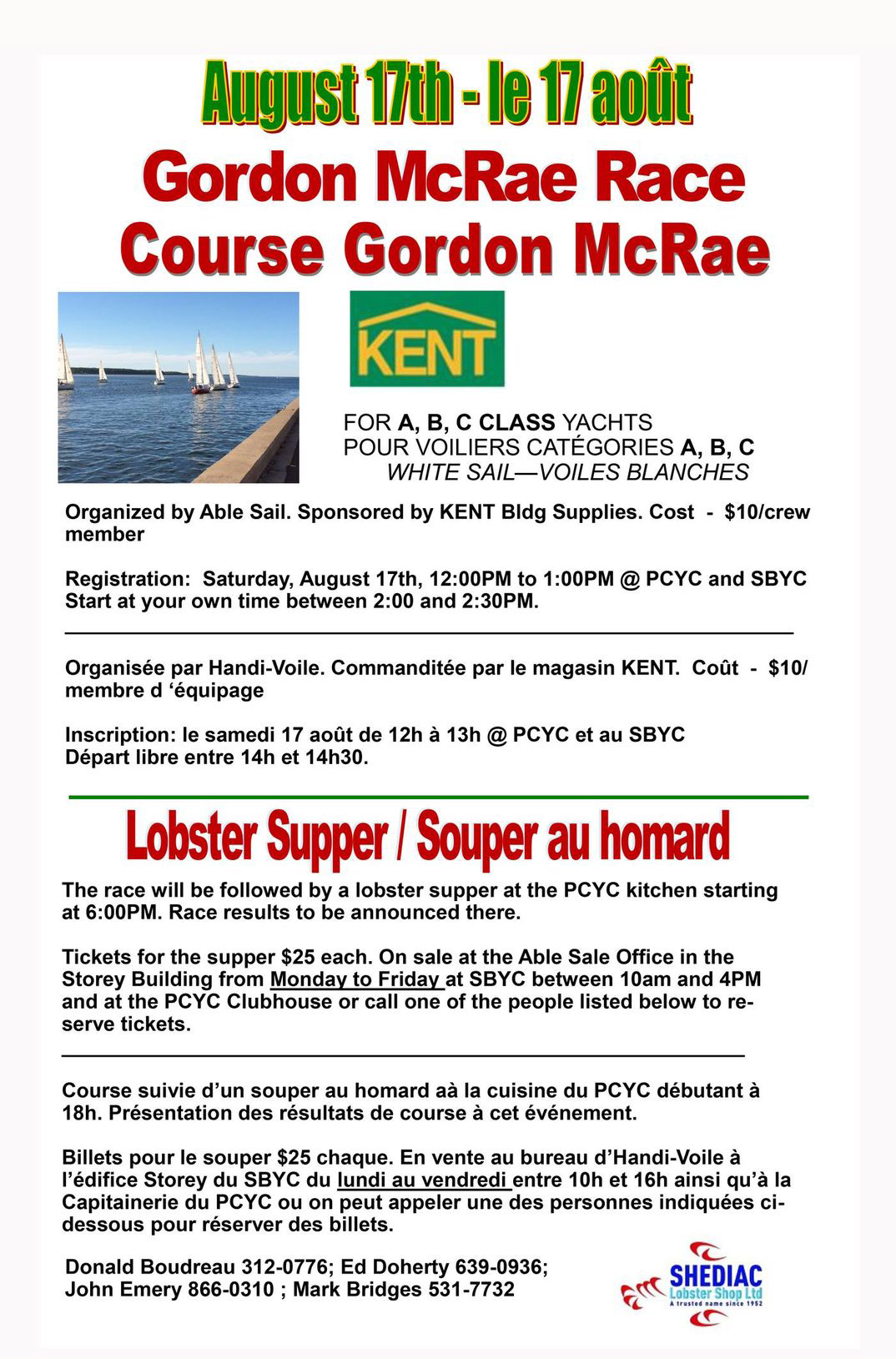 If you wish to join the PCYC lift, please contact the Club directly by phone (506-532-6800) by 17 September 2021 to be added to the list.